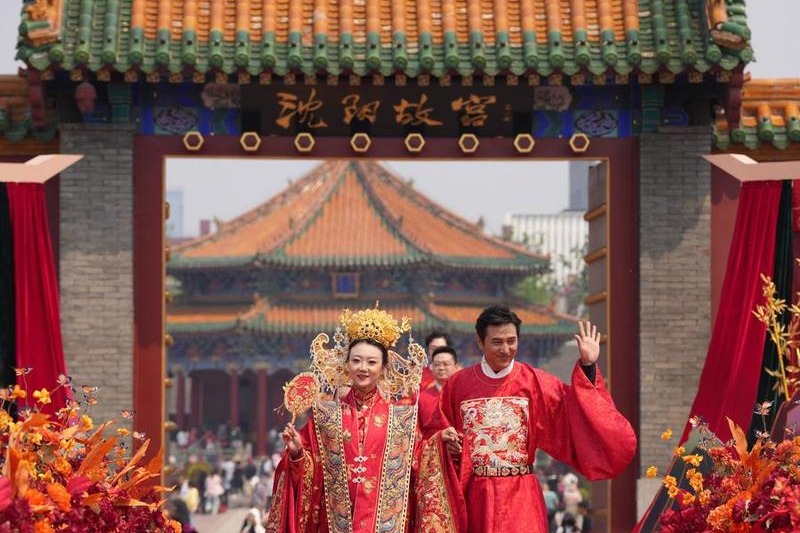 Снимка на младоженци по време на групова сватба на южния площад на музея на двореца Шенян в Шенян, провинция Ляонин в Североизточен Китай, 22 май 2025 г. [Photo/Xinhua]